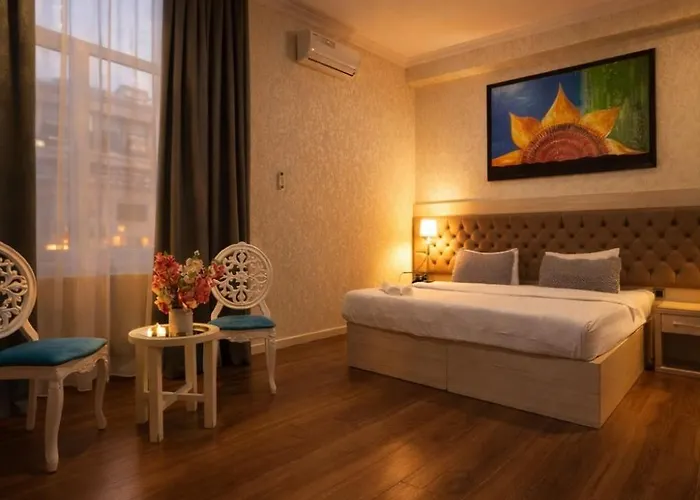 The hotel in the Sabayil district of Baku, 2.5 km from the Azerbaijan National Carpet Museum. This hotel is located 650 metres from the Azerbaijan State Academic Opera and Ballet Theater and within 25 minutes' walk of the Muhammad Mosque. The Empire Business is within a 100-metre distance of Cafar Cabbarli tube station and in close proximity to 28 May A bus stop.